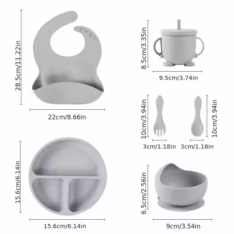 Juego de Vajilla de Silicona Ecológica con Baberos Ajustables y Combo de Cuchara
